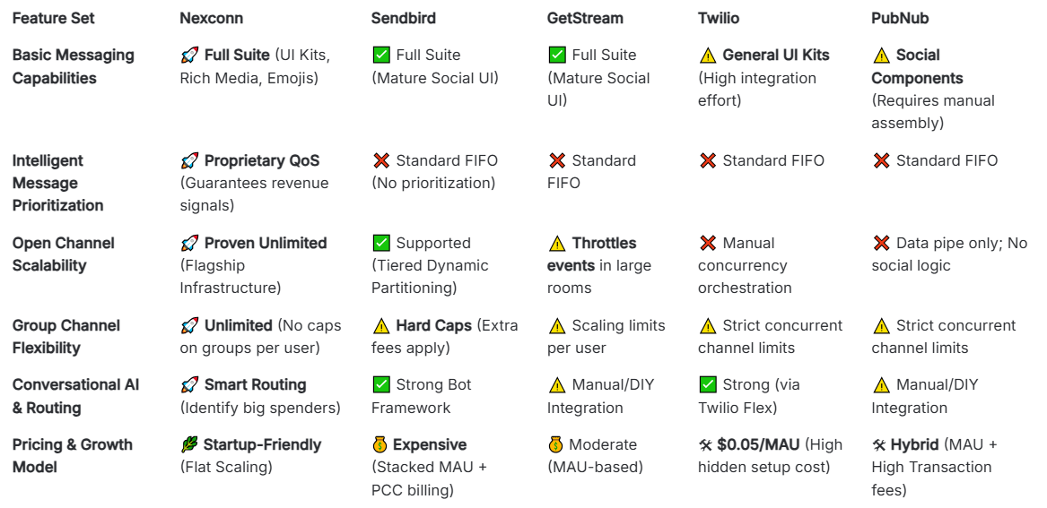 🆚 Nexconn vs. Sendbird, Twilio, PubNub, and GetStream: The 2026 Developer’s Guide